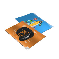 Produção de Adesivo ou Etiqueta com impressão colorida frente (4x0) em Papel Couchê 80g no formato 105x148mm (10,5 x 14,8 cm).